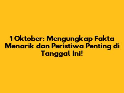 1 Oktober memang terlihat seperti tanggal biasa saja, tapi tahukah kamu bahwa tanggal ini diperingati sebagai Hari Kesaktian Pancasila di Indonesia? Selain itu, ada banyak peristiwa bersejarah dan momen penting lainnya yang terjadi pada tanggal ini di berbagai belahan dunia. Penasaran kan? Mari kita gali lebih dalam!