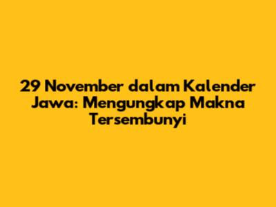 Buat para football lover yang juga tertarik dengan budaya Jawa, pasti penasaran kan, tanggal 29 November itu istimewanya apa sih dalam kalender Jawa? Nah, kali ini kita bakal bahas tuntas tentang 29 November dari sudut pandang kalender Jawa, termasuk weton, wuku, dan berbagai makna yang terkandung di dalamnya. Yuk, simak artikel ini sampai selesai!