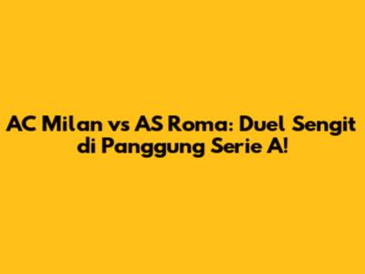 Pertandingan antara AC Milan dan AS Roma adalah sebuah tontonan yang wajib ditonton bagi para penggemar sepak bola. Pertandingan ini tidak hanya menyajikan pertarungan sengit di lapangan, tetapi juga menawarkan sejarah panjang, rivalitas yang membara, dan momen-momen tak terlupakan. Dari sejarah pertemuan yang kaya, prediksi menarik, hingga jadwal pertandingan yang harus dicatat, semuanya menjadi daya tarik tersendiri. Kita juga telah membahas pemain kunci yang patut diwaspadai, yang akan memberikan warna tersendiri dalam pertandingan. Jangan lupa untuk memasukkan tanggal pertandingan ke dalam kalender kamu dan ajak teman-teman atau keluarga untuk menonton bersama.