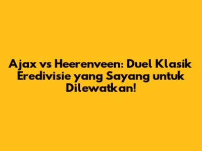 Hey football lover! Siap untuk pertandingan seru di Eredivisie? Kali ini kita bakal ngebahas duel klasik antara Ajax dan Heerenveen. Pertandingan ini selalu menyajikan tontonan menarik, penuh dengan drama, gol-gol indah, dan tentunya, persaingan ketat. Buat kamu yang penasaran dengan prediksi, analisis mendalam, dan highlight pertandingannya, yuk simak artikel ini sampai habis!