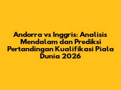 Football lover, sudah siap untuk membahas pertandingan seru antara Andorra dan Inggris? Pertandingan Kualifikasi Piala Dunia 2026 ini pasti sayang untuk dilewatkan. Yuk, kita bedah habis mulai dari performa tim, strategi, sampai prediksi skornya!