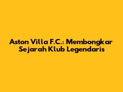 Aston Villa F.C.: Sejarah Klub Bola Legendaris