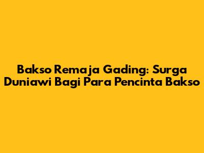 Jangan ragu untuk mengunjungi Bakso Remaja Gading dan rasakan sendiri kelezatan bakso yang legendaris ini. Pastikan Anda mencoba berbagai variasi bakso yang tersedia dan nikmati suasana yang ramah dan bersahabat. Ajak teman, keluarga, atau pasangan Anda untuk berbagi pengalaman kuliner yang tak terlupakan. Bakso Remaja Gading siap menyambut Anda dengan hidangan terbaik dan pelayanan yang memuaskan.