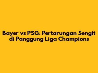 Jadwal Bayer vs PSG selalu dinantikan oleh para penggemar sepak bola. Pertandingan mereka biasanya dijadwalkan pada malam hari, sehingga para penggemar di seluruh dunia bisa menyaksikannya secara langsung. Hasil Bayer vs PSG akan selalu menjadi topik hangat yang diperbincangkan di berbagai platform. Kita bisa melihat highlights Bayer vs PSG untuk menyaksikan gol-gol indah dan momen-momen terbaik dalam pertandingan. Selain itu, statistik Bayer vs PSG juga akan memberikan gambaran yang jelas mengenai performa kedua tim dalam pertandingan tersebut.