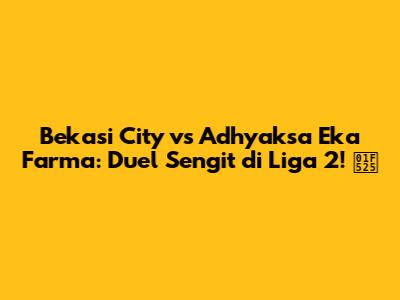 Hey football lovers! Siap-siap buat nyaksiin pertandingan seru antara Bekasi City dan Adhyaksa Eka Farma, nih! Duel di Liga 2 ini pasti bakal panas dan sayang banget buat dilewatin. Buat kalian yang penasaran sama prediksi, analisis, dan semua hal tentang pertandingan ini, yuk, simak artikel lengkapnya di bawah ini!