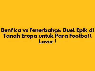 Benfica vs Fenerbahçe: Duel Epik di Tanah Eropa untuk Para Football Lover!