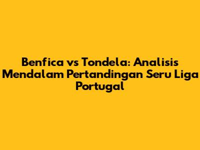 Hey football lovers! Siap untuk pertandingan seru di Liga Portugal? Kali ini kita akan membahas tuntas duel antara Benfica dan Tondela. Pertandingan ini pastinya sayang untuk dilewatkan, jadi mari kita bedah segala aspeknya, mulai dari performa tim, head-to-head, prediksi skor, hingga pemain kunci yang bakal bersinar. Yuk, simak ulasan lengkapnya!