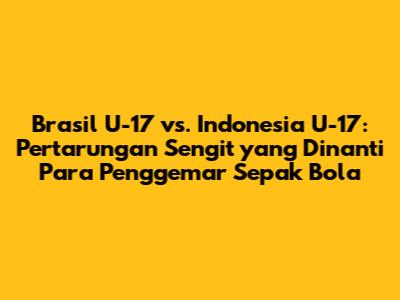 Brasil U-17 vs. Indonesia U-17: Pertarungan Sengit yang Dinanti Para Penggemar Sepak Bola