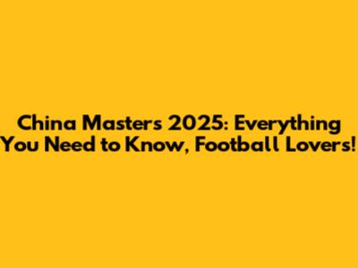 China Masters 2025: Everything You Need to Know, Football Lovers!