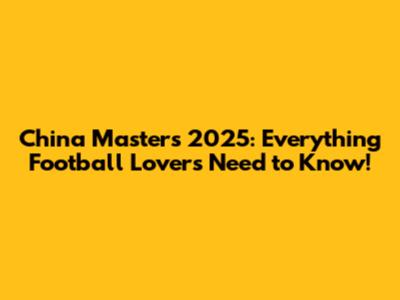 China Masters 2025: Everything Football Lovers Need To Know!