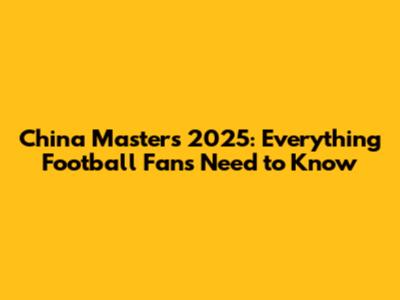 China Masters 2025: Everything Football Fans Need To Know