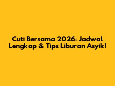 Hey football lover! Udah pada mikirin rencana liburan buat tahun 2026 belum nih? Nah, biar liburan kamu makin asyik dan nggak keteteran, yuk kita bahas tuntas jadwal cuti bersama 2026! Dengan mengetahui jadwalnya dari sekarang, kamu bisa ancang-ancang buat booking tiket pesawat, hotel, atau bahkan nyusun itinerary yang seru abis. Dijamin deh, liburan kamu tahun depan bakal jadi unforgettable moment! So, stay tuned ya, karena kita bakal kupas tuntas semua informasi penting seputar cuti bersama 2026, mulai dari tanggal-tanggalnya, ide liburan menarik, sampai tips-tips biar liburan kamu makin hemat dan menyenangkan. Let's go!