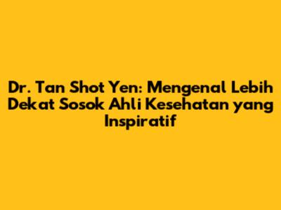 Football lover, kali ini kita akan membahas tuntas tentang seorang tokoh inspiratif di dunia kesehatan, yaitu Dr. Tan Shot Yen. Siapa sih sebenarnya Dr. Tan Shot Yen ini? Apa saja kontribusinya di bidang kesehatan? Yuk, kita simak ulasan lengkapnya!