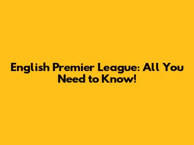 English Premier League: All You Need To Know!