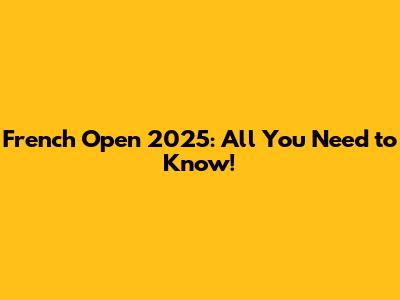French Open 2025: All You Need To Know!
