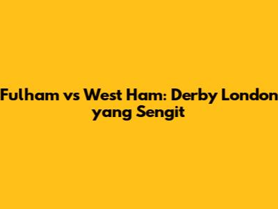 Fulham Vs West Ham: Derby London Yang Sengit