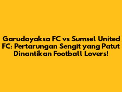 Garudayaksa FC vs Sumsel United FC – Siapa yang gak semangat kalau ngomongin duel dua tim sepak bola ini? Sebagai football lover, kita semua pasti setuju kalau setiap pertandingan sepak bola itu punya cerita dan keunikannya masing-masing. Nah, kali ini kita bakal bedah habis-habisan tentang laga seru antara Garudayaksa FC dan Sumsel United FC. Mulai dari analisis mendalam, prediksi skor, berita terkini, jadwal pertandingan, pemain kunci yang bakal jadi sorotan, strategi yang kemungkinan besar bakal mereka pakai, ulasan pertandingan, sorotan gol-gol keren, statistik lengkap, sampai rekor pertemuan kedua tim. Dijamin, setelah baca artikel ini, kamu bakal makin paham dan siap buat dukung tim jagoanmu!