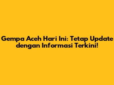 Gempa Aceh Hari Ini: Tetap Update dengan Informasi Terkini!