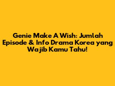 Kalian football lover drama Korea pasti lagi penasaran banget kan sama drama yang satu ini? Yap, Genie Make A Wish! Drama ini lagi hype banget dan banyak yang nanya, "Genie Make A Wish berapa episode sih?" Nah, buat menjawab rasa penasaran kalian, yuk simak artikel ini sampai habis! Kita bakal bahas tuntas jumlah episode, sinopsis singkat, pemain, dan fakta menarik lainnya tentang drama Genie Make A Wish ini. Jadi, siap-siap ya buat kepo lebih dalam!