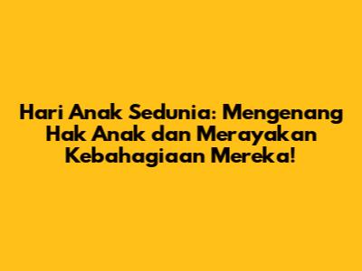 Mari kita jadikan setiap hari sebagai Hari Anak Sedunia, dengan terus berupaya untuk menciptakan dunia yang lebih aman, nyaman, dan ramah bagi anak-anak. Dengan begitu, kita bisa memastikan bahwa setiap anak memiliki kesempatan untuk tumbuh dan berkembang secara optimal, meraih cita-cita mereka, dan menjadi generasi penerus bangsa yang berkualitas. Selamat Hari Anak Sedunia! Mari bergandengan tangan untuk masa depan anak-anak yang lebih baik!