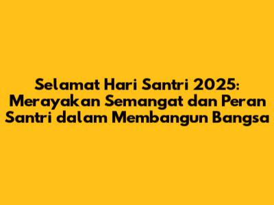 Selamat Hari Santri 2025, guys! Sebagai seorang football lover yang juga punya ketertarikan pada semangat kebangsaan, gue antusias banget nih menyambut perayaan ini. Hari Santri bukan cuma sekadar tanggal merah di kalender, tapi juga momen penting buat kita semua merenungkan peran santri dalam sejarah dan pembangunan Indonesia. Tahun ini, mari kita rayakan Hari Santri dengan lebih meriah, penuh makna, dan tentunya semangat persatuan yang membara. Artikel ini akan mengajak bro dan sis semua untuk menyelami lebih dalam tentang Hari Santri, mulai dari sejarahnya, makna yang terkandung di dalamnya, hingga harapan untuk masa depan.