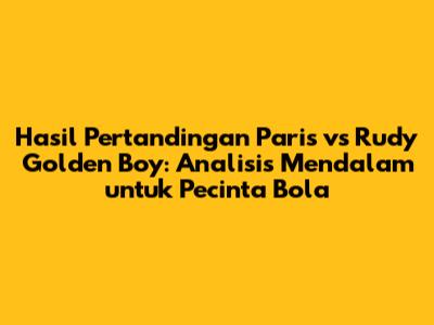 Dengan latar belakang yang menarik dan rivalitas yang kuat, pertandingan Paris vs Rudy Golden Boy menjadi salah satu laga yang paling dinantikan dalam musim ini. Kita akan melihat bagaimana kedua tim berjuang keras untuk meraih kemenangan dan membuktikan diri sebagai yang terbaik. Jangan lewatkan analisis mendalam mengenai jalannya pertandingan, strategi yang digunakan, dan pemain kunci yang akan menjadi penentu hasil akhir.
