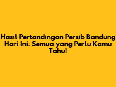 Hasil Pertandingan Persib Bandung Hari Ini: Semua yang Perlu Kamu Tahu!