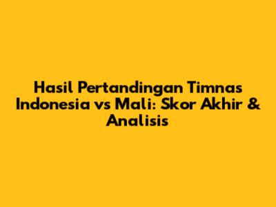 Oke, buat yang udah nggak sabar, langsung aja nih kita kasih tau hasil akhirnya. Pertandingan antara Timnas Indonesia melawan Mali berakhir dengan skor [masukkan skor akhir di sini]. Gimana, hasilnya sesuai harapan atau justru bikin penasaran? Tenang, kita bakal bedah lebih dalam di bagian selanjutnya. Skor akhir ini tentu menjadi catatan penting bagi Timnas Indonesia untuk terus berbenah dan meningkatkan performa di pertandingan-pertandingan berikutnya. Bagi para pemain, hasil ini bisa menjadi motivasi untuk berlatih lebih keras dan memberikan yang terbaik bagi Merah Putih. Semangat Garuda!