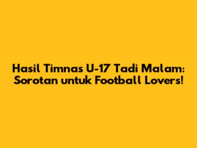 Hasil Timnas U-17 Tadi Malam: Sorotan untuk Football Lovers!