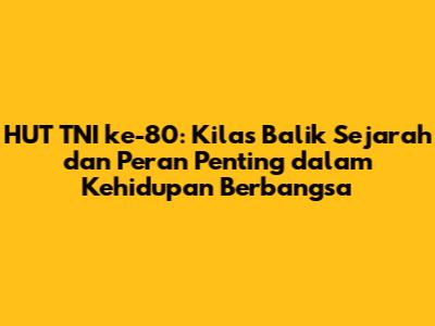 HUT TNI ke-80 adalah momentum yang tepat untuk merefleksikan perjalanan panjang TNI. Kita patut mengapresiasi segala pengorbanan dan dedikasi para prajurit TNI dalam menjaga kedaulatan dan keamanan negara. Mari kita dukung TNI dalam menjalankan tugasnya, serta berharap agar TNI semakin profesional, modern, dan dicintai oleh rakyat.