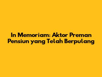 Siapa yang tidak kenal dengan serial Preman Pensiun? Sinetron yang satu ini memang sukses mencuri perhatian banyak football lover di Indonesia. Alur cerita yang menarik, karakter yang kuat, dan dialog yang khas membuat Preman Pensiun melekat di hati pemirsa. Namun, di balik kesuksesan layar kaca, ada cerita sedih yang menyelimuti. Beberapa aktor yang turut membesarkan nama Preman Pensiun telah berpulang ke pangkuan Tuhan Yang Maha Esa. Artikel ini akan menjadi sebuah penghormatan terakhir untuk para aktor legendaris tersebut, mengenang jasa-jasa mereka dalam dunia hiburan tanah air, khususnya dalam serial Preman Pensiun yang kita cintai bersama.