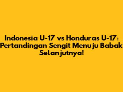 Hey football lover! Siap-siap buat bahas pertandingan seru antara Indonesia U-17 dan Honduras U-17, yuk! Pertandingan ini bukan cuma sekadar adu taktik dan skill di lapangan hijau, tapi juga penentuan nasib kedua tim buat melaju ke babak selanjutnya. Pastinya, tensi pertandingan bakal tinggi banget dan kita sebagai penonton bakal dibuat deg-degan sepanjang 90 menit (atau lebih!). Nah, biar kita makin excited, mari kita bedah tuntas semua aspek penting dari pertandingan ini. Mulai dari performa tim, strategi yang mungkin diterapkan, sampai pemain kunci yang bakal jadi sorotan. So, stay tuned dan mari kita ramaikan diskusi ini!