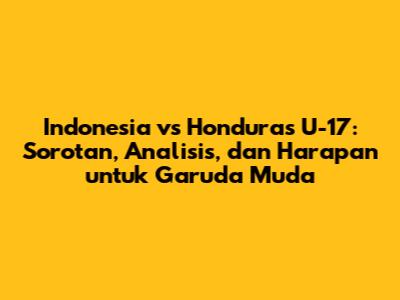 Pertandingan Indonesia vs Honduras U-17 adalah sebuah pengalaman berharga bagi para pemain muda kita. Hasil pertandingan, apapun itu, akan menjadi pelajaran berharga yang bisa diambil untuk meningkatkan kemampuan dan meraih prestasi yang lebih tinggi di masa depan. Kita sebagai supporter tentu memiliki harapan besar untuk Garuda Muda, agar mereka terus berkembang, memberikan yang terbaik, dan mengharumkan nama bangsa di kancah sepak bola dunia.