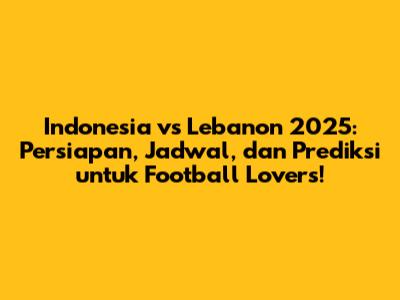 Hallo, para football lovers! Siapa nih yang udah nggak sabar menantikan pertandingan seru antara Indonesia dan Lebanon di tahun 2025? Artikel ini bakalan jadi one-stop information buat kalian semua, mulai dari jadwal, prediksi, hingga kabar terbaru seputar pertandingan yang pastinya bikin deg-degan ini. Mari kita bedah tuntas segala hal yang perlu kalian ketahui! Kita akan membahas mulai dari performa kedua tim, peluang kemenangan, prediksi formasi, hingga strategi apa yang mungkin diterapkan oleh kedua pelatih. Jadi, siapkan cemilan dan minuman favorit kalian, karena kita akan menyelami dunia sepak bola yang penuh gairah ini!