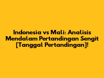 [Tanggal Pertandingan] jadi hari yang penting buat sepak bola Indonesia. Pertandingan melawan Mali ini bukan sekadar laga persahabatan biasa, tapi juga ajang buat menguji kemampuan dan strategi Timnas Garuda. Buat para football enthusiast, jangan sampai kelewatan!