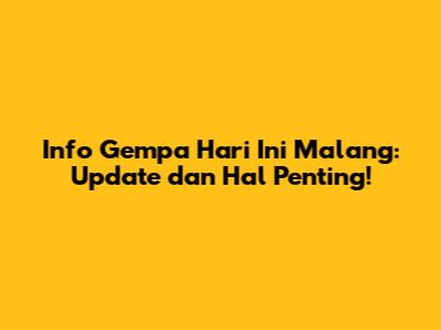 Gempa Hari Ini Malang: Apa yang Perlu Kamu Tahu?