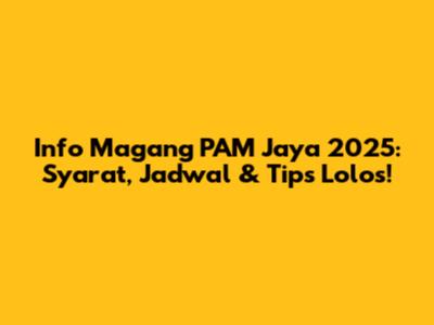 Info Magang PAM Jaya 2025: Syarat, Jadwal & Tips Lolos!