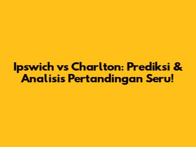 Sebagai football lover, pasti sudah nggak sabar menantikan duel seru antara Ipswich Town dan Charlton Athletic, kan? Nah, artikel ini bakal mengupas tuntas segala hal yang perlu kamu tahu tentang pertandingan ini. Mulai dari prediksi skor, analisis performa tim, hingga peluang pemain. Yuk, simak ulasan lengkapnya!