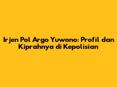Irjen Pol Argo Yuwono adalah sosok perwira tinggi Polri yang memiliki karier yang gemilang dan pengalaman yang kaya di bidang reserse. Beliau dikenal sebagai sosok yang tegas, profesional, dan humanis. Berbagai jabatan penting pernah diemban olehnya, termasuk Kepala Divisi Humas Polri dan Asisten Logistik Kapolri. Dedikasi dan prestasinya selama bertugas di kepolisian telah mengantarkannya meraih berbagai penghargaan. Semoga Irjen Pol Argo Yuwono terus sukses dalam kariernya dan terus memberikan kontribusi positif bagi bangsa dan negara!