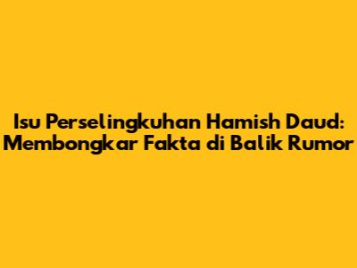Isu perselingkuhan Hamish Daud menjadi topik hangat yang banyak diperbincangkan di kalangan netizen dan penggemar. Sebagai seorang figur publik, kehidupan pribadi Hamish Daud selalu menarik perhatian, terutama hubungannya dengan sang istri, Raisa. Dalam artikel ini, kita akan mencoba merangkum informasi seputar isu ini, mulai dari rumor yang beredar, bukti-bukti yang ada (jika ada), hingga analisis mendalam tentang dampaknya.