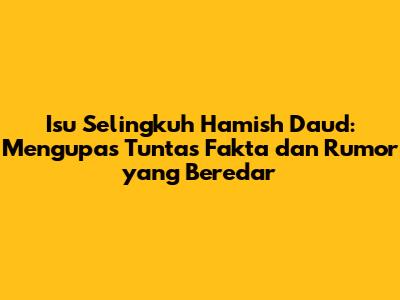 Untuk menganalisis potensi kebenaran isu perselingkuhan Hamish Daud, kita perlu melihat berbagai aspek. Berikut adalah beberapa poin yang perlu dipertimbangkan: