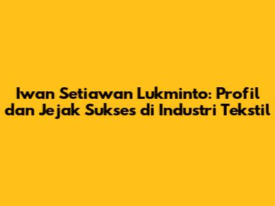 Kenalan lebih dekat yuk dengan sosok Iwan Setiawan Lukminto, seorang tokoh penting di industri tekstil Indonesia! Buat football lover yang mungkin lebih familiar dengan dunia lapangan hijau, kali ini kita geser sedikit ke dunia bisnis yang nggak kalah seru. Kita bakal kupas tuntas profil, perjalanan karir, dan jejak sukses beliau di industri yang penuh tantangan ini. Siap? Yuk, simak!