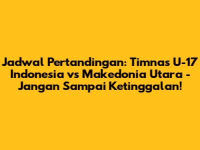 Jadwal Pertandingan: Timnas U-17 Indonesia vs Makedonia Utara - Jangan Sampai Ketinggalan!