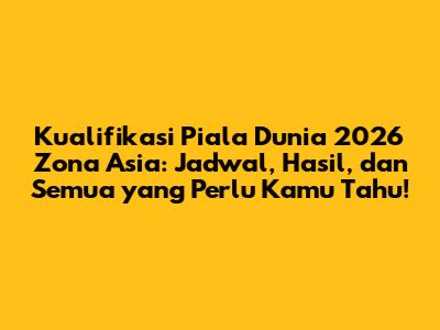 Nah, ini dia bagian yang paling ditunggu-tunggu: jadwal lengkap dan hasil pertandingan Kualifikasi Piala Dunia 2026 Zona Asia! Pastinya, kamu nggak mau kan ketinggalan satu pun pertandingan timnas kesayangan? Jadi, catat baik-baik ya!