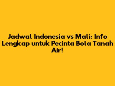 Pertandingan sepak bola antara Indonesia dan Mali selalu menjadi daya tarik tersendiri bagi para penggemar sepak bola tanah air. Kedua tim memiliki sejarah dan karakteristik permainan yang menarik untuk disimak. Indonesia, dengan semangat juang dan dukungan penuh dari suporter, selalu berusaha memberikan yang terbaik di setiap pertandingan. Sementara itu, Mali, dengan kualitas pemain dan taktik yang terstruktur, juga menjadi lawan yang patut diperhitungkan. Pertemuan kedua tim ini tentu akan menyajikan laga yang sengit dan penuh drama. Bagi para football lover, mengetahui jadwal pertandingan ini adalah hal yang sangat penting agar tidak ketinggalan momen-momen seru di lapangan hijau. Dengan mengetahui jadwal yang tepat, kamu bisa merencanakan waktu untuk menonton langsung di stadion, atau sekadar menyaksikan di rumah bersama teman dan keluarga. Jadi, mari kita simak informasi lengkap mengenai jadwal Indonesia vs Mali!