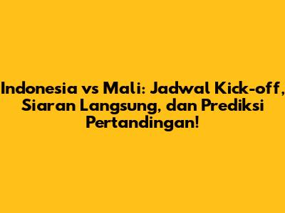 Pertandingan antara Indonesia vs Mali diprediksi akan berjalan sengit dan ketat. Kedua tim punya kualitas yang seimbang, dan pertandingan ini kemungkinan akan ditentukan oleh faktor mentalitas dan keberuntungan. Prediksi skor akhir untuk pertandingan ini adalah [Prediksi Skor]. Tapi ingat, ini cuma prediksi ya, hasil akhir bisa saja berbeda tergantung jalannya pertandingan di lapangan.