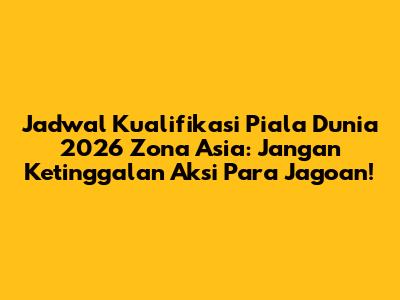 Jadwal Kualifikasi Piala Dunia 2026 Zona Asia menjadi topik hangat bagi para football lover di seluruh dunia, khususnya di Asia. Siapa sih yang nggak pengen melihat negara kesayangannya berlaga di panggung sepak bola paling bergengsi sejagat? Nah, artikel ini hadir buat kalian semua, para pecinta bola, untuk memberikan informasi terlengkap dan ter-update seputar jadwal kualifikasi Piala Dunia 2026 zona Asia. Mari kita bedah bersama-sama, mulai dari format kualifikasi, tim-tim yang bertanding, hingga jadwal pertandingan yang wajib kalian catat.