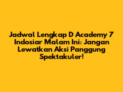 Pastinya, pertanyaan yang paling bikin penasaran adalah: jam berapa sih D Academy 7 tayang malam ini? Tenang, football lover.. eh, para pecinta dangdut! Kita sudah siapkan jadwal lengkapnya untuk kalian. Indosiar, sebagai stasiun televisi kesayangan kita, selalu memberikan yang terbaik untuk menghibur Anda. Jadwal tayang D Academy 7 malam ini adalah sebagai berikut: