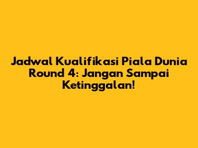 Kualifikasi Piala Dunia round 4 ini menjanjikan pertandingan-pertandingan seru dan penuh drama dari seluruh dunia. Dari zona Asia hingga Amerika, tim-tim terbaik akan saling berhadapan untuk memperebutkan tiket ke putaran final. Jadi, jangan sampai ketinggalan satu pertandingan pun! Catat jadwalnya, dukung tim kesayanganmu, dan nikmati serunya persaingan sepak bola kelas dunia!