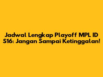 Hey football lover! Udah pada siap buat dukung tim jagoan kalian di playoff MPL ID S16? Pasti udah pada penasaran kan, kapan sih tim kesayangan kalian bakal bertanding? Nah, biar nggak ketinggalan satu pertandingan pun, yuk simak jadwal lengkap playoff MPL ID S16 di bawah ini! Dijamin, informasi ini bakal bikin kalian makin semangat buat nonton dan mendukung tim favorit kalian!